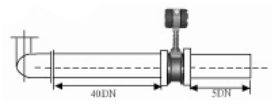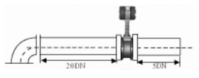 3.弯管的安装: 如果流量计的前端有90°弯头或T型接头,要保证流量计的前直管段≥15D,后直管段≥5D |